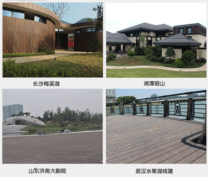 1、新產品:作為防腐材料應用于棧道、園林景觀工程、建筑外墻裝飾和露天陽臺等領域,是替代易變形易開裂的防腐木和木塑復合材料的自然材料。