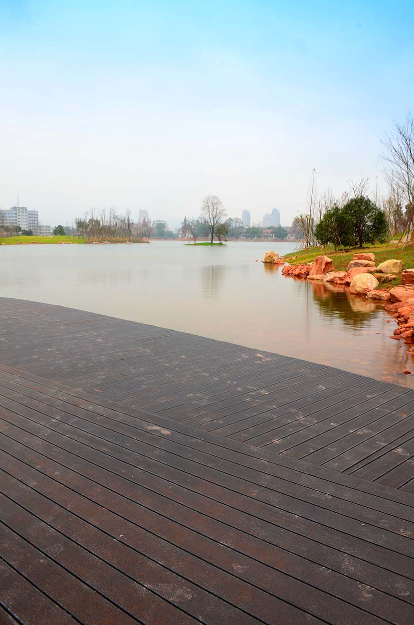 金獅湖公園位于浙江金華市北部的浦江縣,面積1265畝(水域面積368畝),總投資48億元。項目規劃為一環(金獅湖慢行游憩環)、三片(人文體驗景觀風貌片、動感都市景觀風貌片、自然生態景觀風貌片)及五區(工業遺存展示區、書香文創休閑區、康體活動休閑區、濕地田園游覽區、濱湖廣場活力區)。公園環湖景觀步道全部使用桃花江戶外防腐竹地板,打造金華的“小西湖”。
