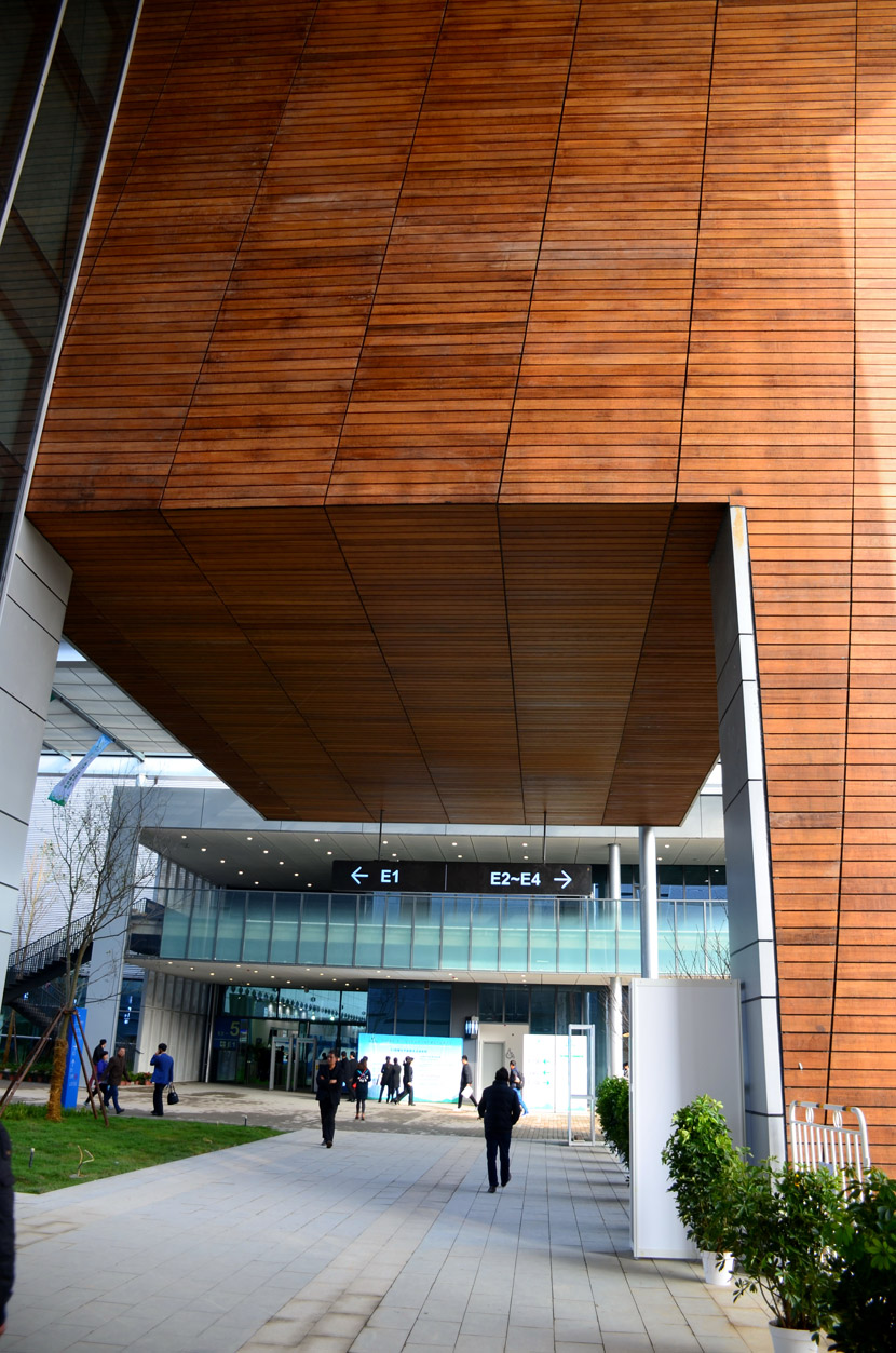 桃花江戶外竹材作為長沙國際會展中心核心裝飾材料安裝已經基本完成,進入后期的檢驗與清潔掃尾工作,項目完全達到設計要求的效果和相關規范及指標,成為項目一大亮點。桃花江戶外竹材具有防腐阻燃不開裂特點,價值竹材獨特的文化底蘊,使得越來越多的設計師偏愛竹材。