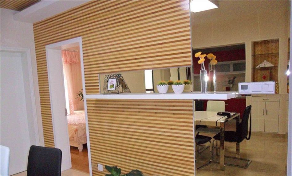 竹材墻體隔斷是利用竹板本身優越的物理性能而組成的新型竹材應用。這種隔斷材料具有穩固性強、隔音、保溫等優良性能。該隔斷竹制材料品種繁多、風格各異,可以隨意安裝及拆卸,能與各種樣式的玻璃、百葉窗及其它配件進行任意組裝,并能和裝飾布、PVC以及三聚氰酰胺板進行多種顏色的組合。上述特點使它廣泛地應用在寫字間、辦公樓等場所。目前,桃花江實業有限公司力致于生產健康環保的家居生活材料。其生產的竹材已廣泛應用于室內裝飾,竹地板、竹門窗、墻體隔斷竹材料、竹家具等等。