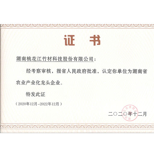 桃花江竹材多次榮獲“湖南省農業產業化龍頭企業”稱號
