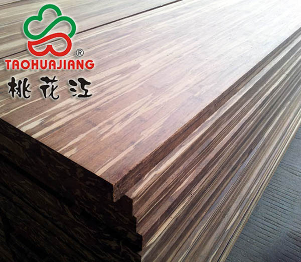 桃花江虎紋(wen)重組竹(zhu)是(shi)將(jiang)竹(zhu)子開成柔軟的絲狀(zhuang)或薄(bo)片狀(zhuang),經過拉(la)絲處理,通(tong)過浸膠熱(re)壓(ya)之后使纖維(wei)重組,改變其(qi)密度、硬(ying)度和其(qi)他(ta)理化性能(neng)。