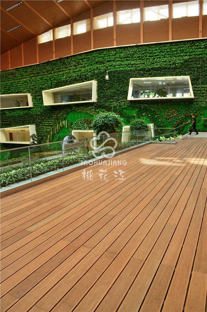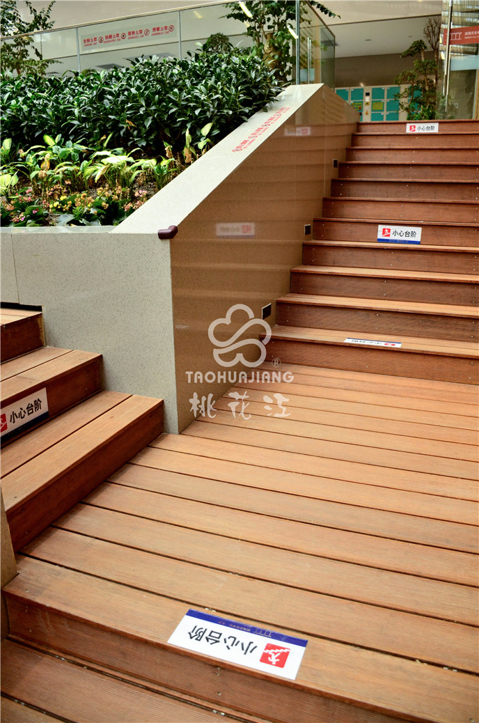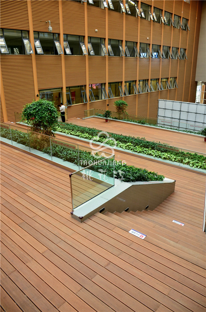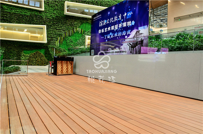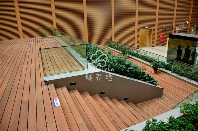 濱海新區文化中心項目中的市民活動中心區域采用桃花江戶外防腐竹地板。竹材深厚的文化底蘊與其優異自然環保的性能一直是文化場館建設材料。